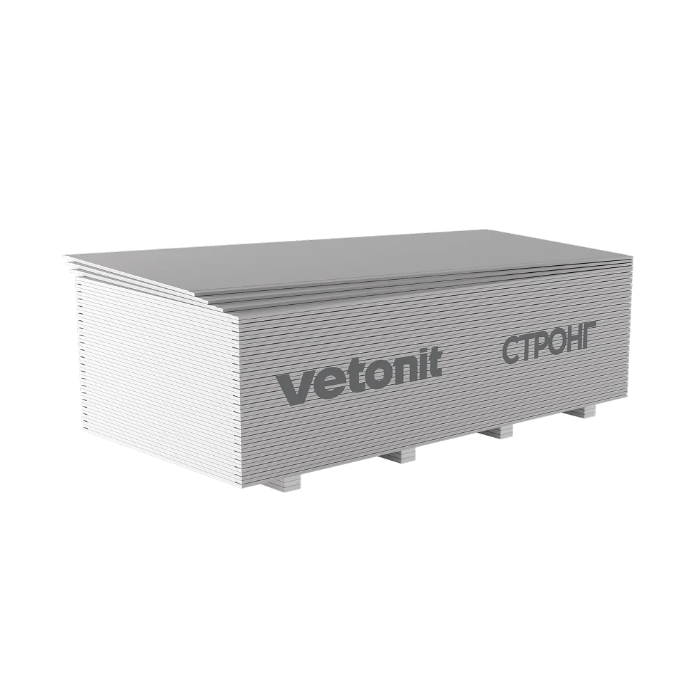 Гипсовая плита Стронг 15 мм ГСП-R обладает высокой плотностью и армированным волокнами сердечником, что обеспечивает жёсткость конструкции, сопоставимую с двумя стандартными плитами толщиной 12 мм. Плита устойчива к ударам и трещинам, обеспечивает ровную поверхность для отделки и высокий уровень звукоизоляции — до 61 дБ.