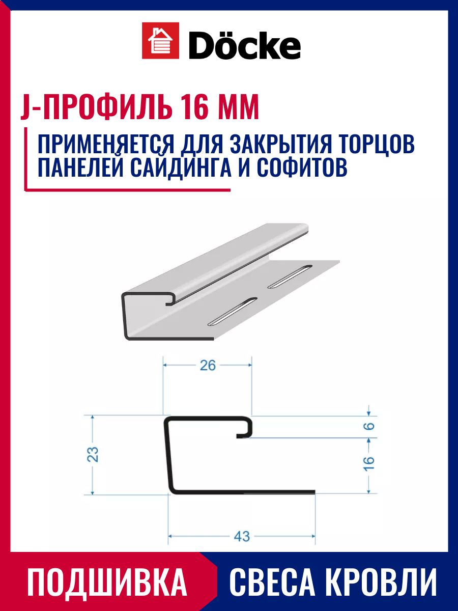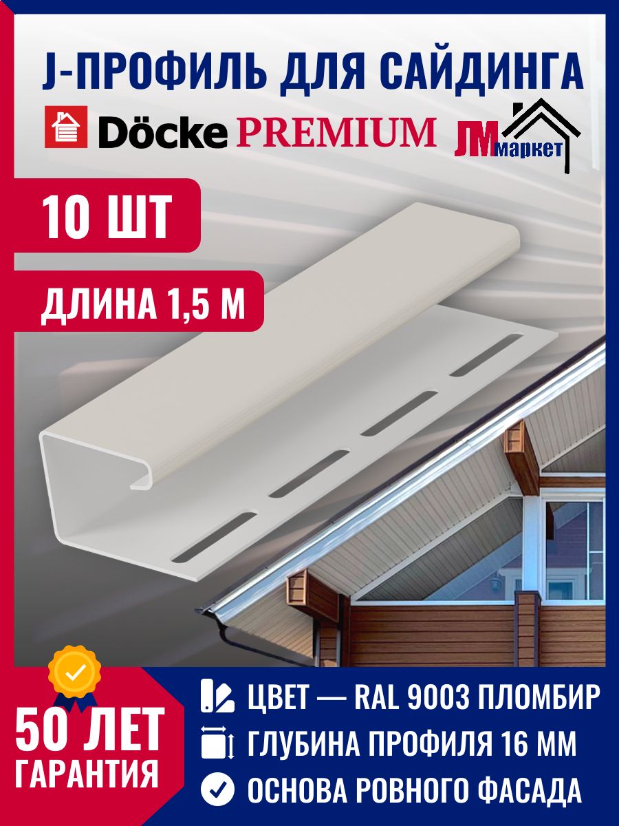 Купить J профиль Docke 10 шт х 1,5 м, Пломбир для закрытия торцов панелей сайдинга и софитов кровли для серии Standart и Premium по выгодной цене в ДомИнком