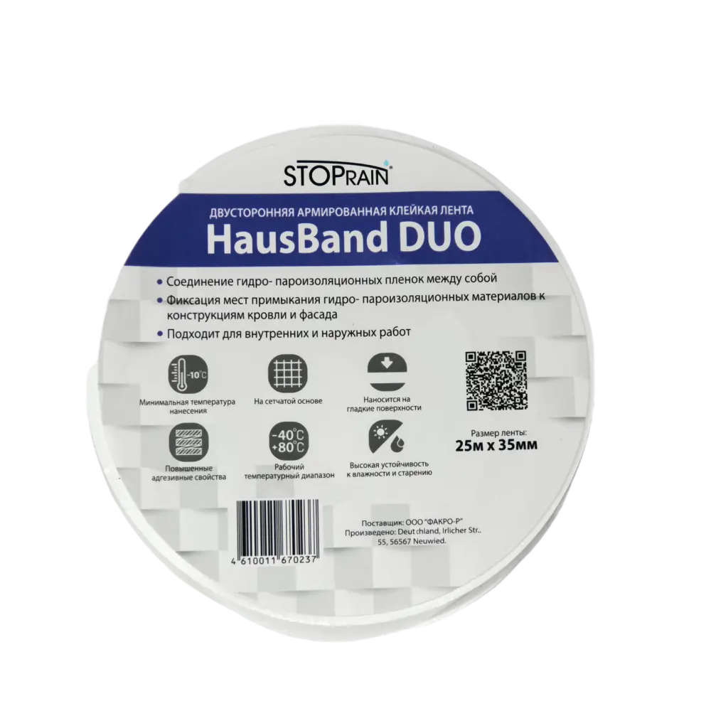 Используется при монтаже Изоспана, Тайвека, Ветранета и других диффузионных мембран. Купить ленту HausBand DUO — значит гарантировать целостность изоляционного контура в стенах, кровле и перекрытиях.
