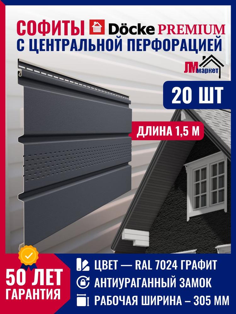 Купить Софит для кровли 20 шт х 1,5 метра, комплект 9 м2 Docke Premium цвет Графит с центральной перфорацией по выгодной цене в ДомИнком