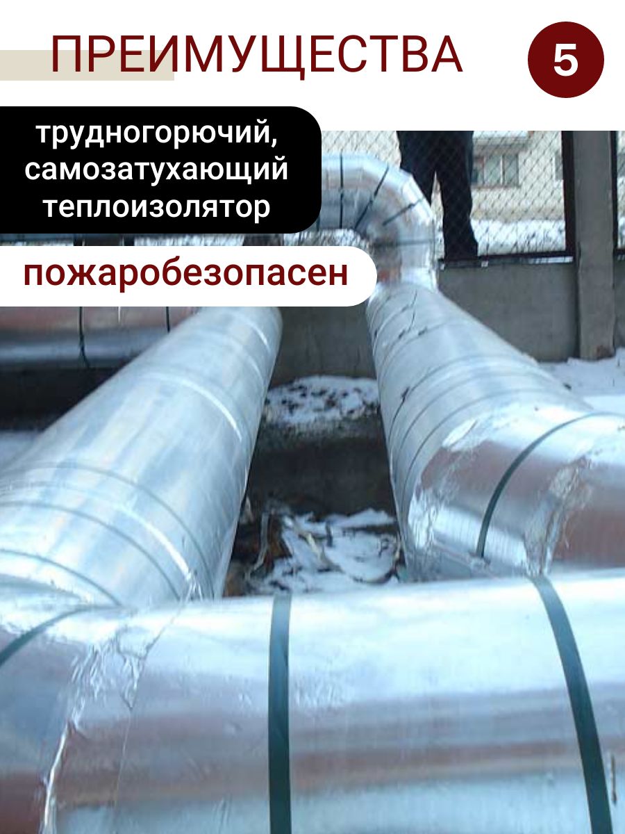 - Защита от влаги и пара: материал служит надежной пароизоляцией. Фольгированный слой предотвращает проникновение влаги и полностью исключает риск появления конденсата на поверхности труб.