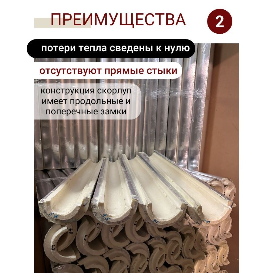 - Отсутствуют прямые стыки, конструкция скорлуп имеет продольные и поперечные замки (потери тепла сведены к нулю).
