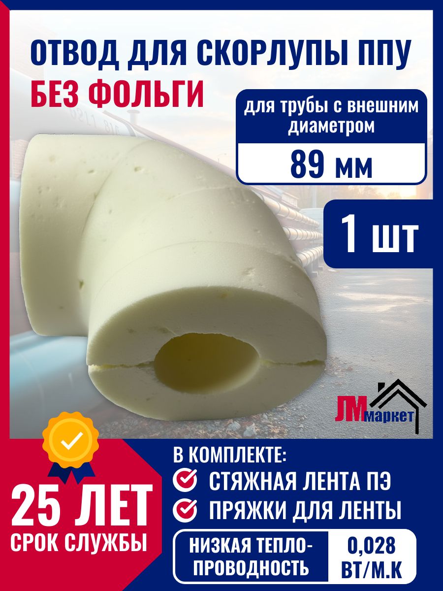 Купить Утеплитель для труб, фольгированный, скорлупа ППУ, отвод 90 гр. для трубы с внешним диаметром 89 мм. по выгодной цене в ДомИнком