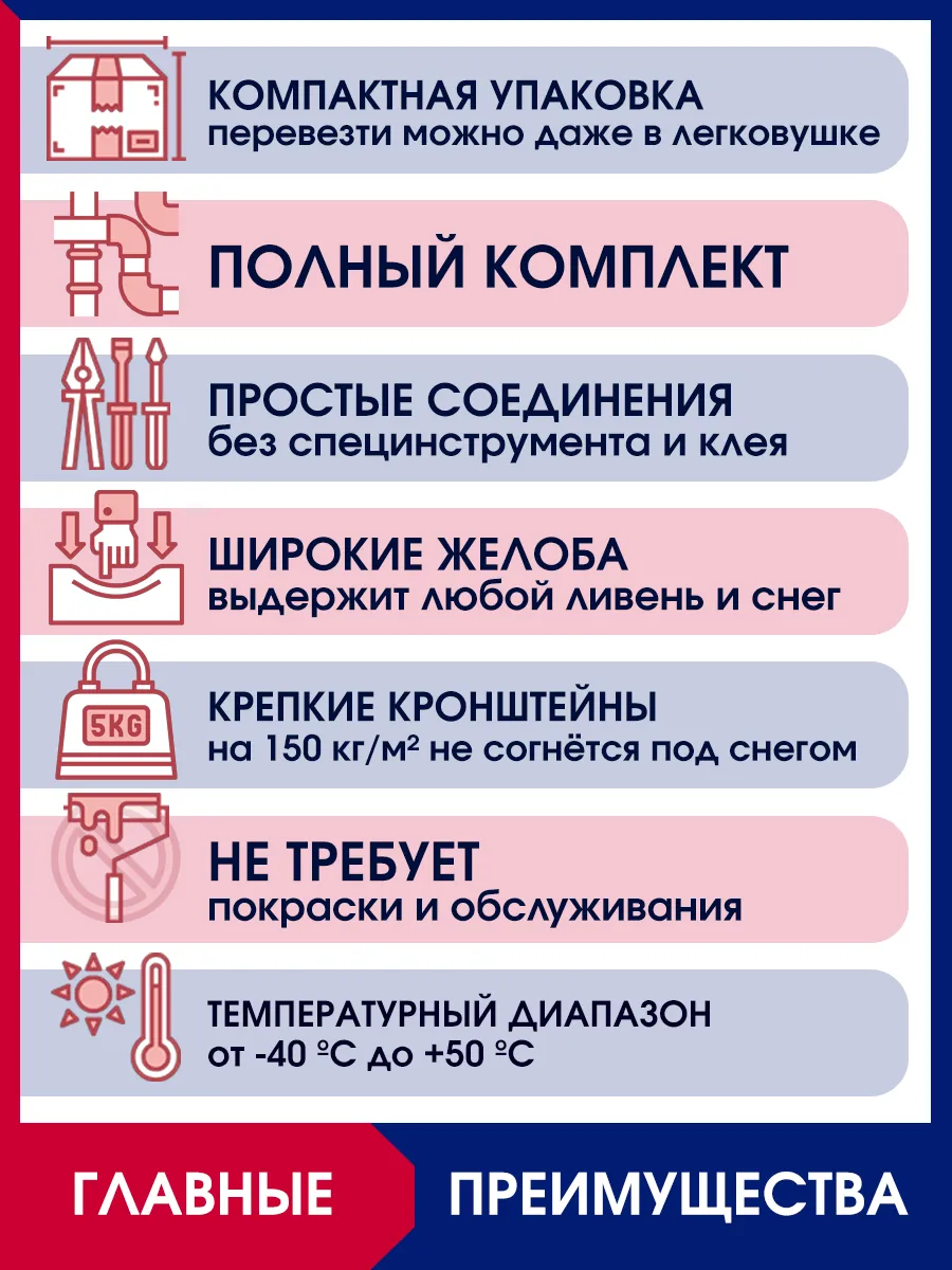 Это продвинутая пластиковая водосточная система для загородного и малоэтажного строительства с повышенной пропускной способностью и повышенной прочностью. Водосточная система Docke включает в себя все необходимое для монтажа на заданную длину карниза: усиленные желоба и трубы, массивные кронштейны с увеличенным шагом крепления, надежные соединители с уплотнителями, это исключает ошибки при подборе, экономит ваше время и даёт уверенность в абсолютной герметичности и надёжности после монтажа. Комплект водосточной системы спроектирован для простого и быстрого монтажа по принципу конструктора. Выбирая водосток Деке премиум, Вы инвестируете не только в функционал, но и в безупречный внешний вид.