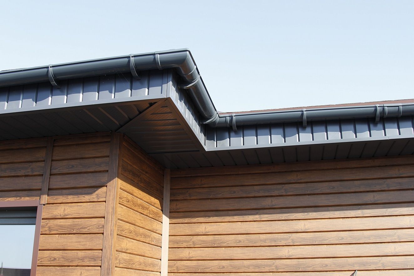 - Сочетаются с любой кровлей и фасадом: цветовая гамма Docke позволяет подобрать водосток в тон или в контраст к любому фасаду и крыше