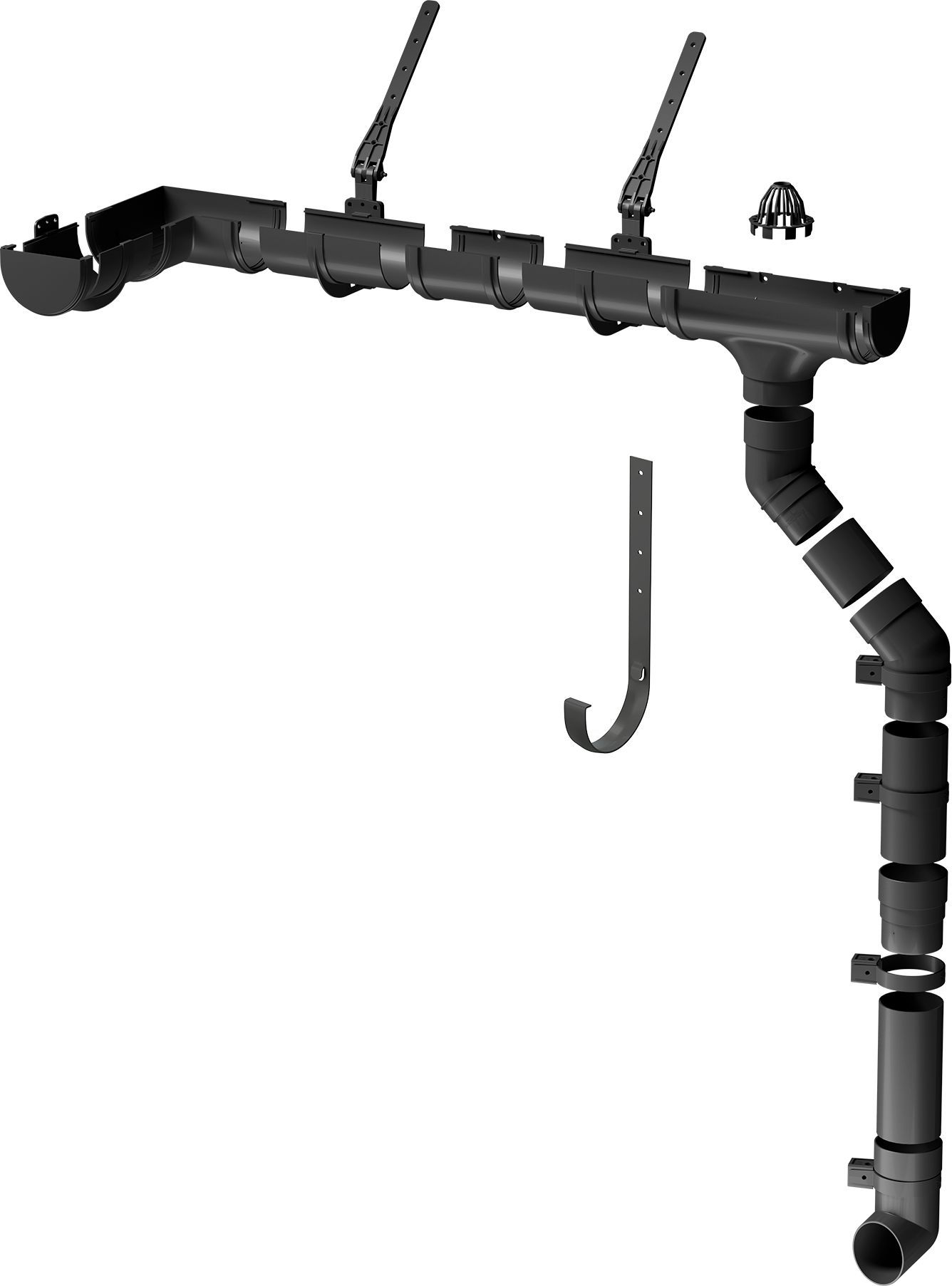 Комплект элементов водосточной системы для наращивания трассы водостока по скату кровли: