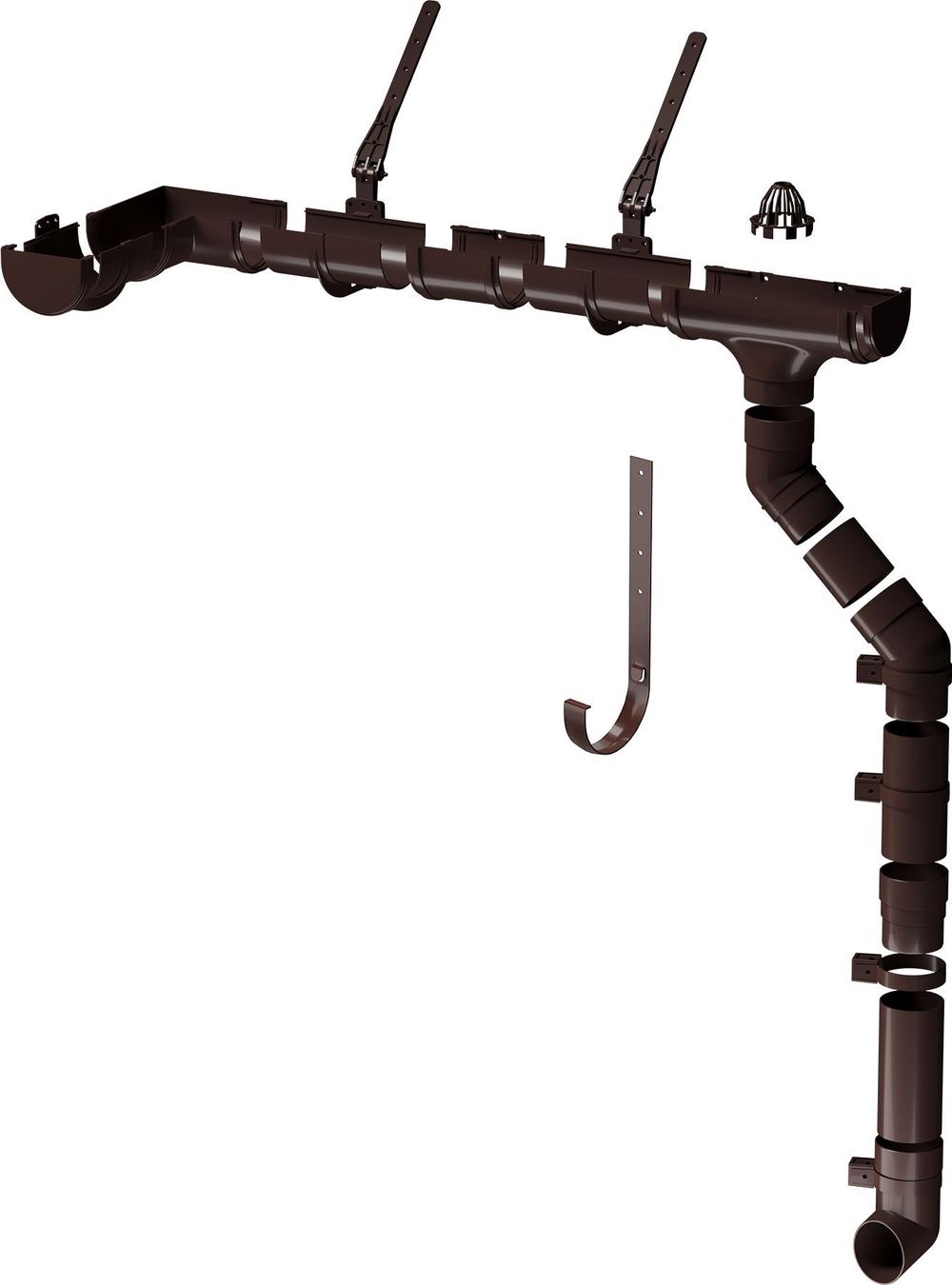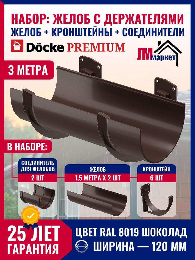 Купить Водосточный желоб с держателем 3м Docke PREMIUM цвет Шоколад, желоб 1,5 м х 2 шт, кронштейн 6 шт, соединитель - 2 шт по выгодной цене в ДомИнком