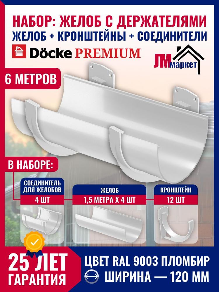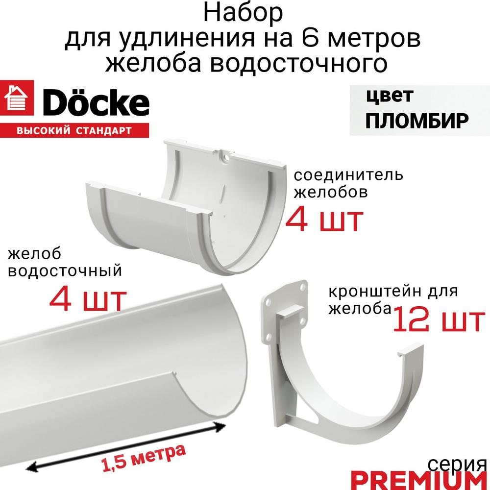 Купить Водосточный желоб с держателем 6м Docke Premium, цвет пломбир, желоб 1,5 м х 4 шт, кронштейн - 12 шт, соединитель - 4 шт по выгодной цене в ДомИнком