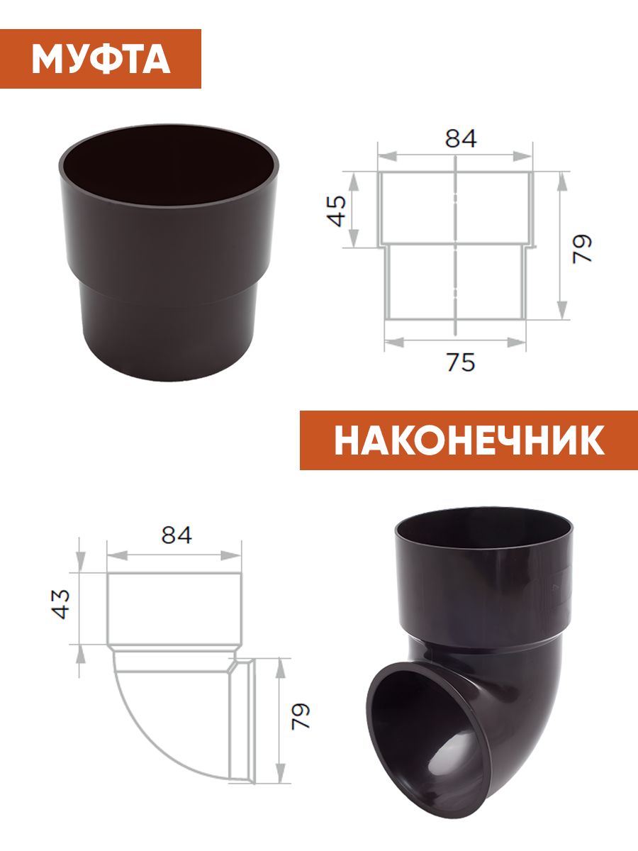 Набор водосточной системы на длину карниза до 6 метров, высоту 3 метра состоит из: