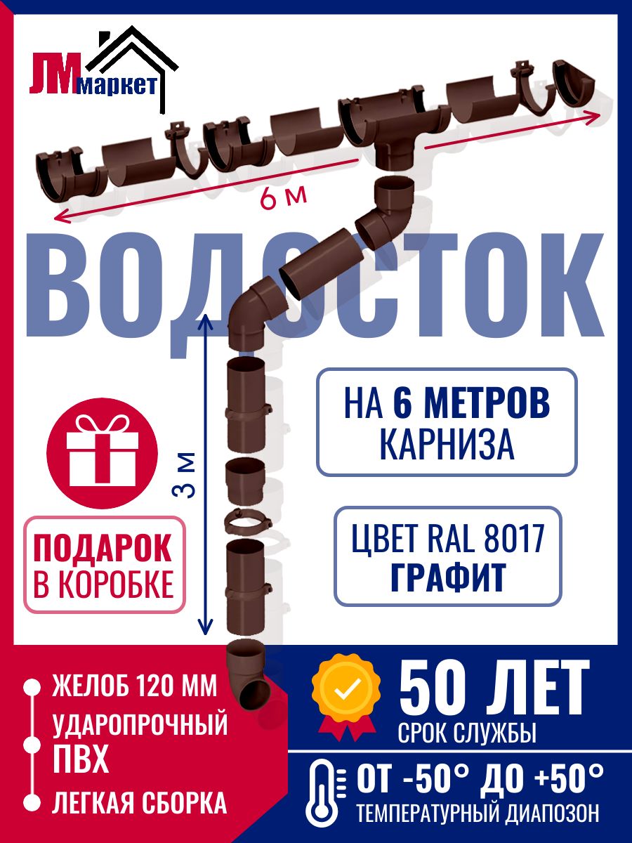 Купить Водосток для крыши 6м/3м, RAL 8017, цвет шоколад по выгодной цене в ДомИнком