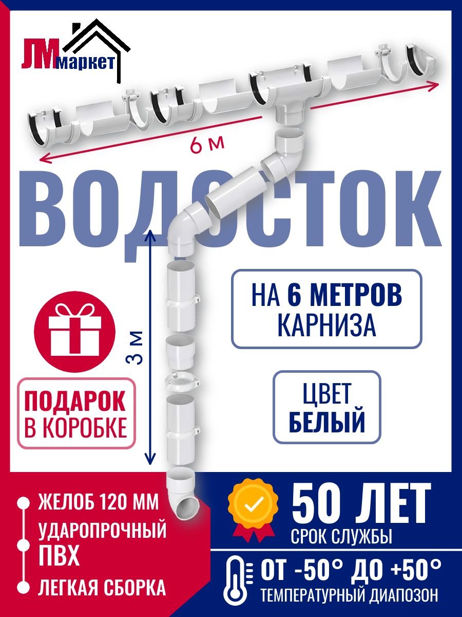 Купить Водосток для крыши, 6м/3м, RAL 9010, цвет белый по выгодной цене в ДомИнком