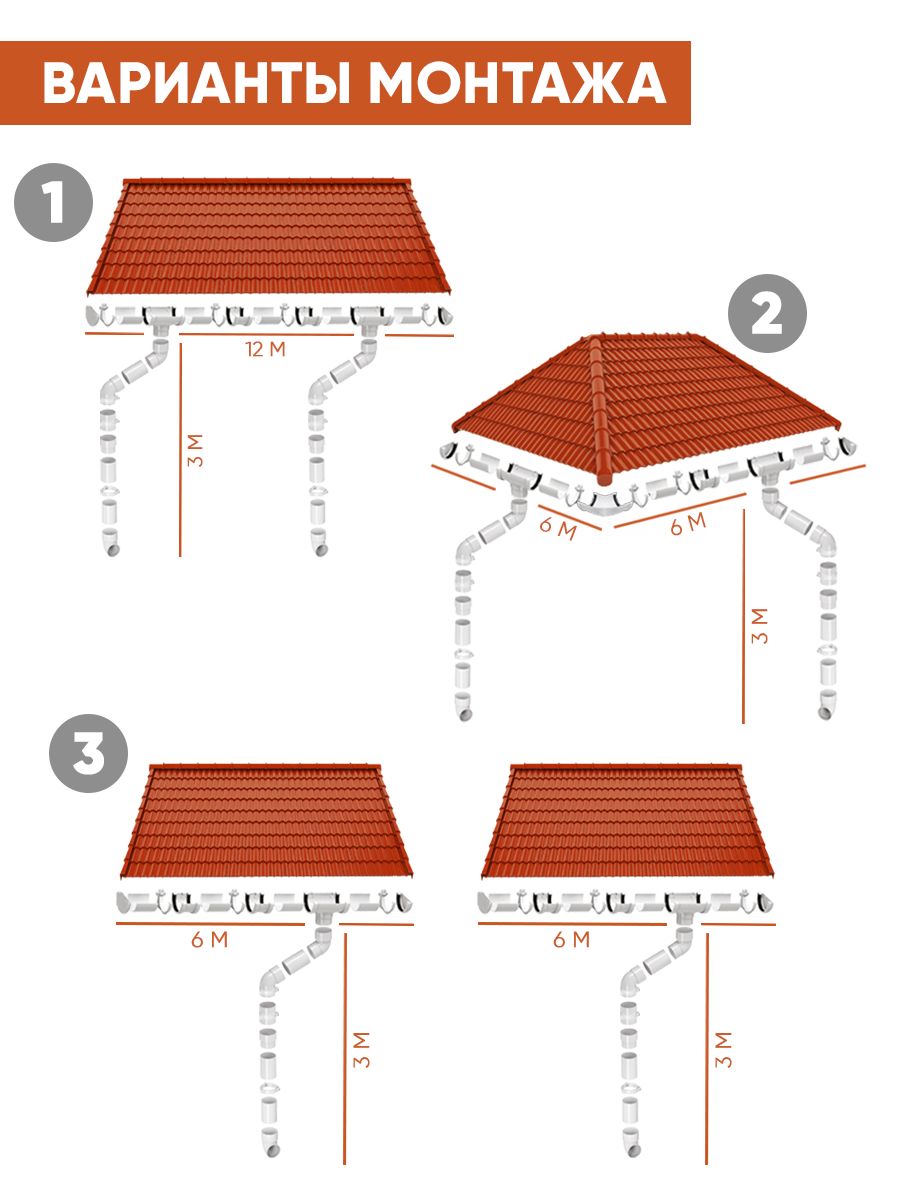 Набор водосточной системы на длину карниза до 12 метров, высоту 3 метра х 3 метра состоит из: