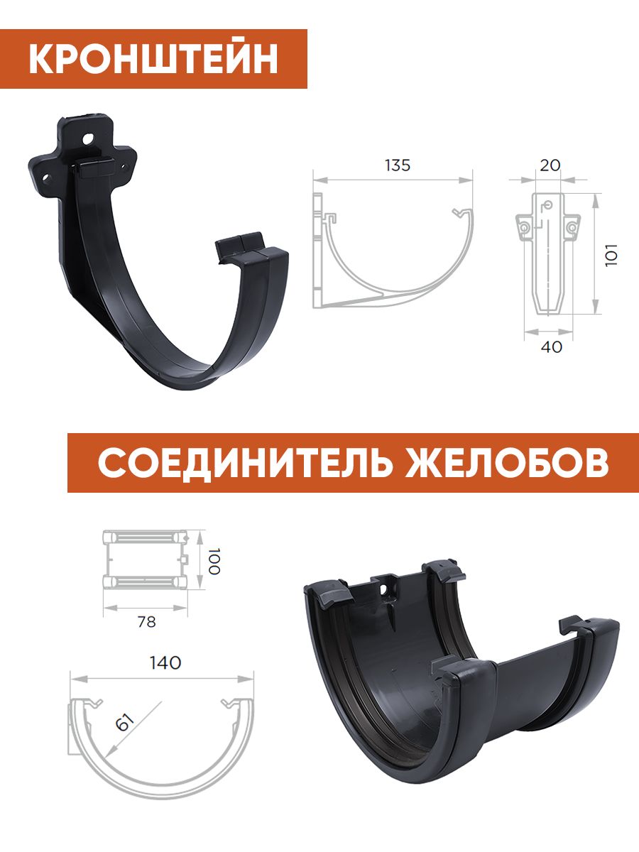 Данный водосток с коричневым оттенком станет отличным выбором для домов с классическим и современным дизайном, придавая завершенность общему облику. Детали, входящие в комплект, обеспечивают надежное крепление, а сам материал устойчив к ультрафиолетовому излучению и механическим повреждениям.