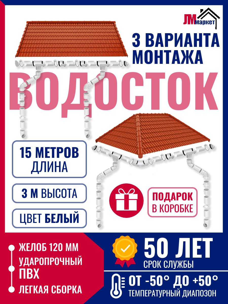 Купить Водосток для крыши дома, 15м/3м/3м, RAL 9010, цвет белый по выгодной цене в ДомИнком