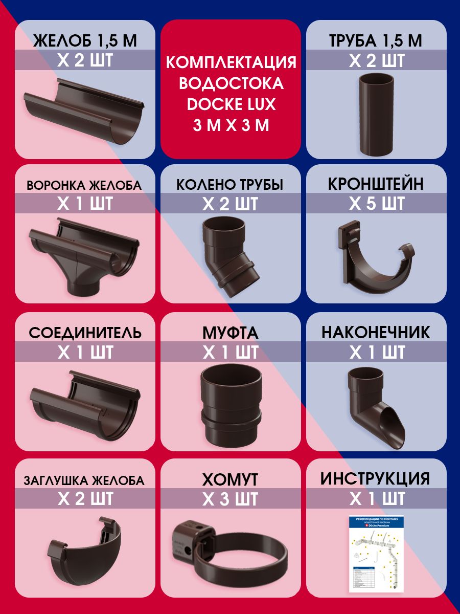 Купить Водосток для крыши дома Docke Lux, 3м/3м, RAL 8019, цвет шоколадный по выгодной цене в ДомИнком