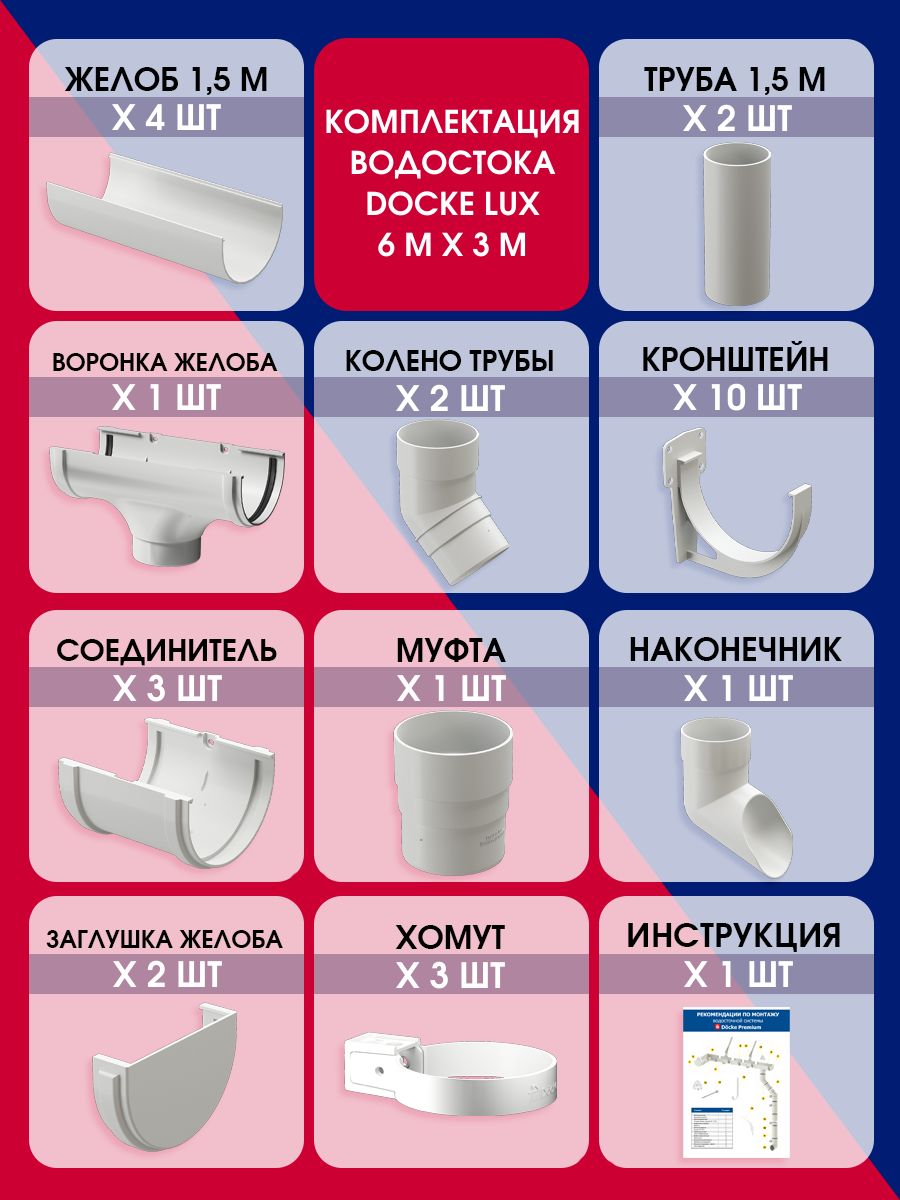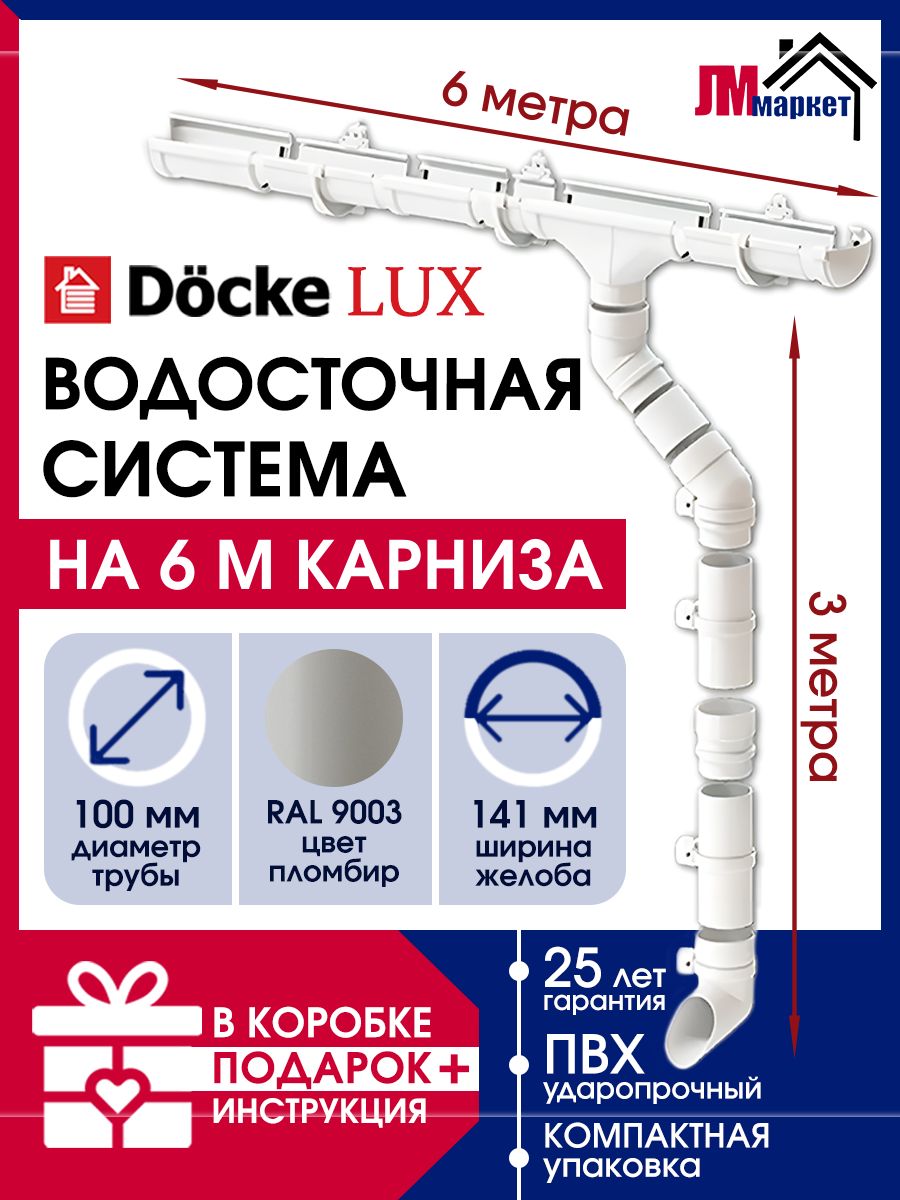 Купить Водосток для крыши дома Docke LUX, 6/3 метров, RAL 9003 цвет пломбир по выгодной цене в ДомИнком