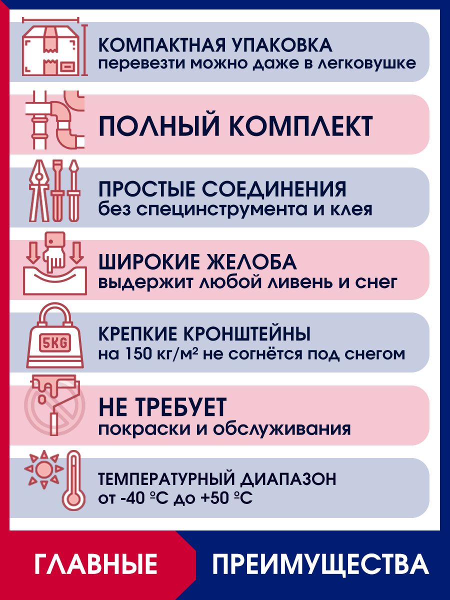 Набор водосточной системы на длину карниза до 3 метров, высоту 3 метра состоит из: