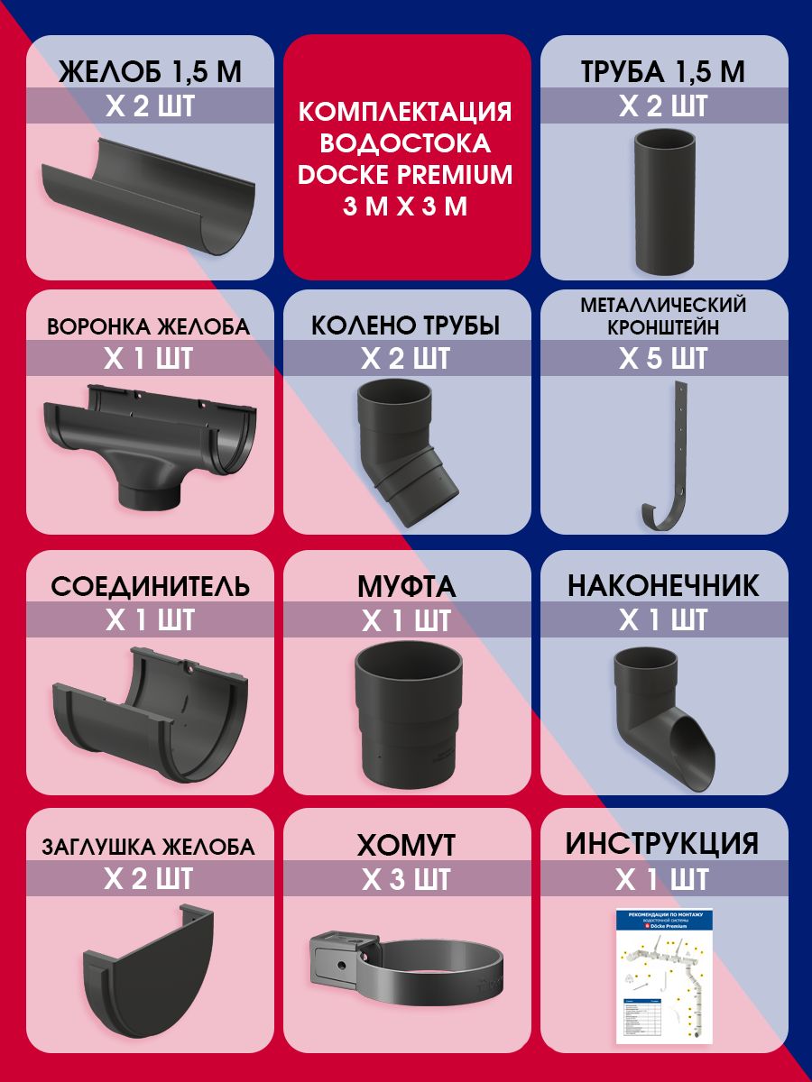 Купить Водосток для крыши дома Docke Premium, 3м/3м, RAL 7024, цвет графит, водосточная система с металлическими кронштейнами по выгодной цене в ДомИнком