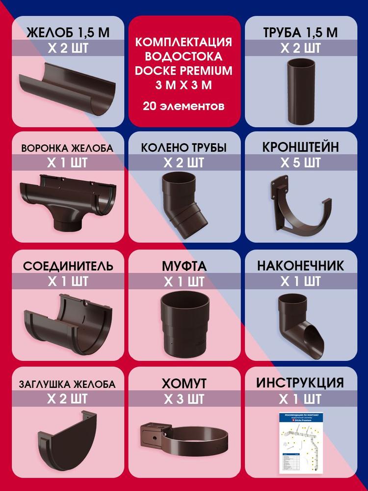 Купить Водосток для крыши дома Docke Premium, 3м/3м, RAL 8019, цвет шоколадный по выгодной цене в ДомИнком