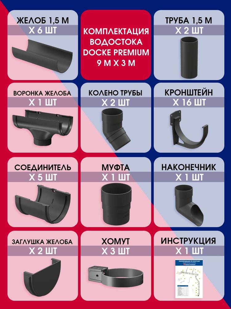 Купить Водосток для крыши дома, Docke Premium, 9м/3м, RAL 7024, цвет графитовый по выгодной цене в ДомИнком