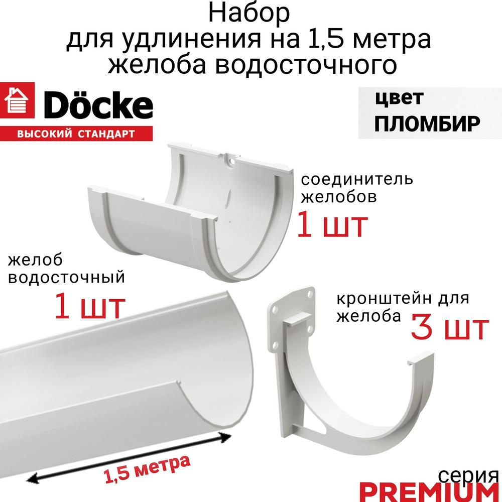 Купить Желоб водосточный с держателями 1,5 метра Docke PREMIUM, цвет пломбир, желоб 1,5 м х 1шт, кронштейн - 3 шт, соединитель - 1 шт по выгодной цене в ДомИнком