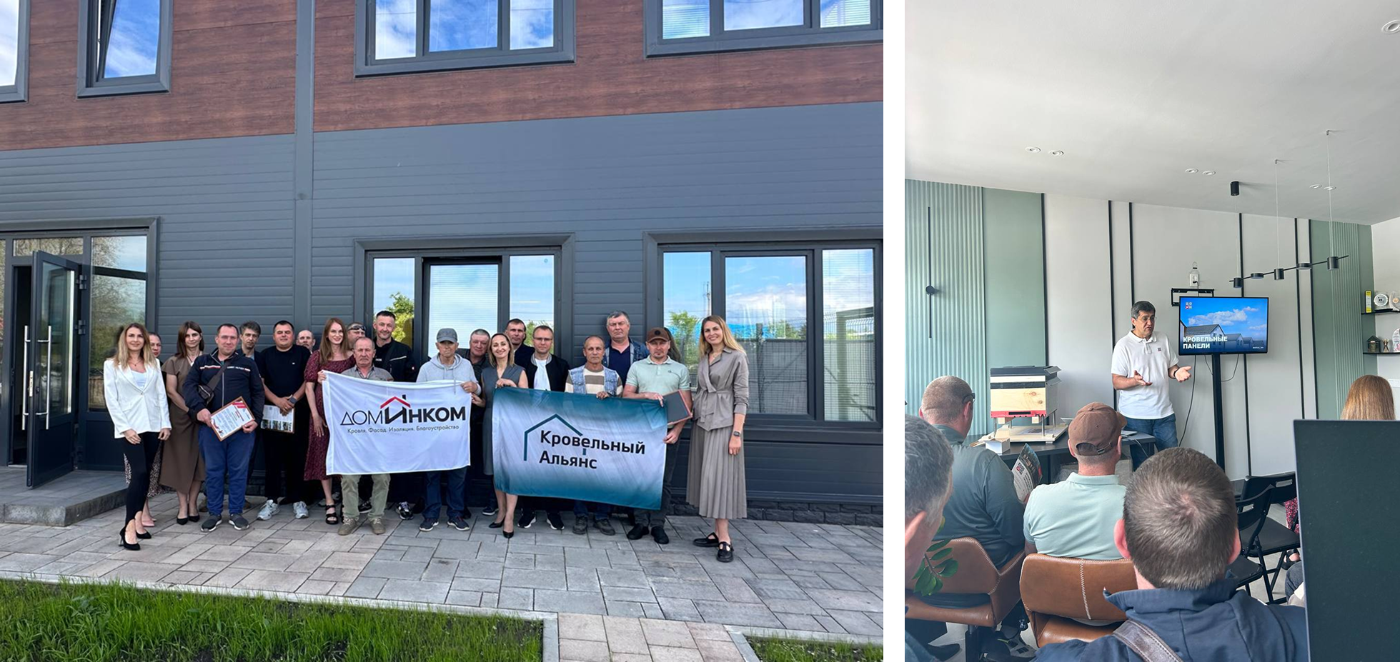 На протяжении многих лет ДомИнком регулярно приводит специалистов, представителей производителей с новинками, показывает, как монтировать, обучает новым продуктам, дискутирует об ошибках использования. Эта работа повышает уровень качества строительства в коттеджном и этажном строительстве, в частности, в кровлях.